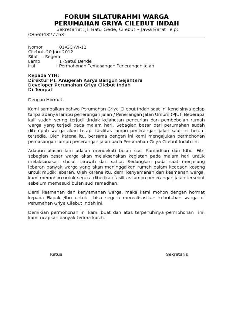 Contoh Surat Permohonan Penerangan Jalan Umum Pdf